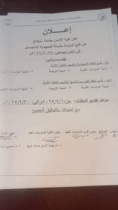 إعلان هام / تعلن كلية الألسن جامعة سوهاج