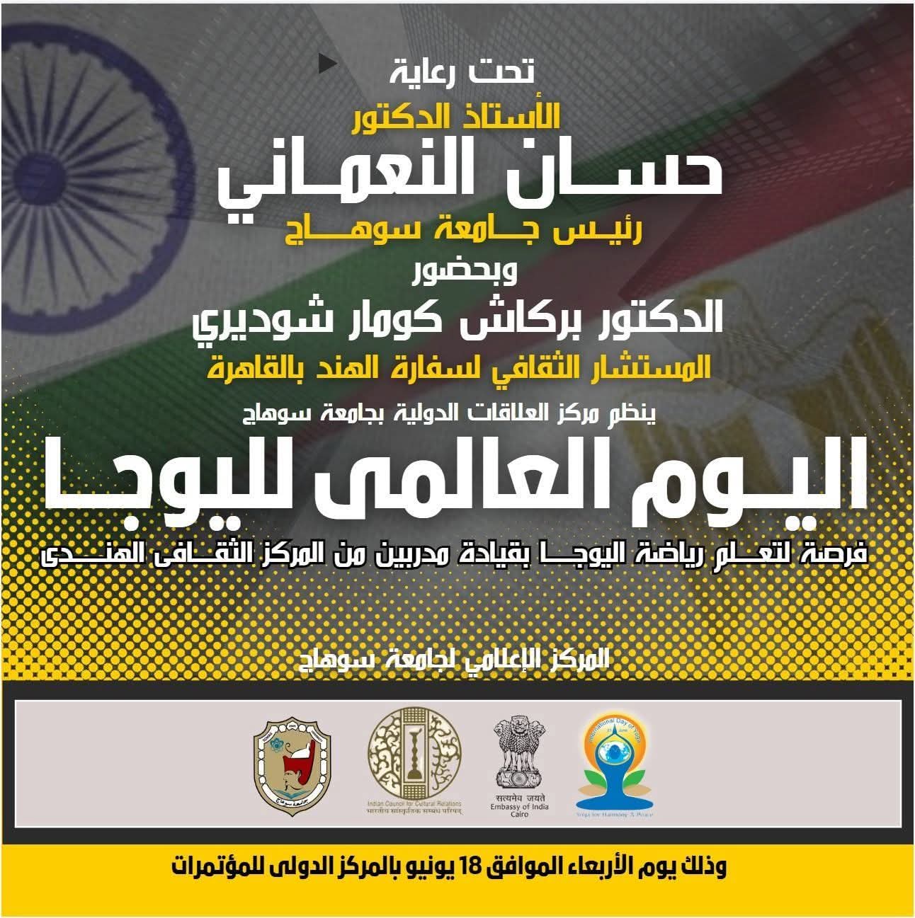تدعوكم جامعة سوهاج للمشاركة في اليوم العالمى لليوجا غدا الأربعاء 18 يونيو بالمركز الدولى للمؤتمرات بالمقر الجديد