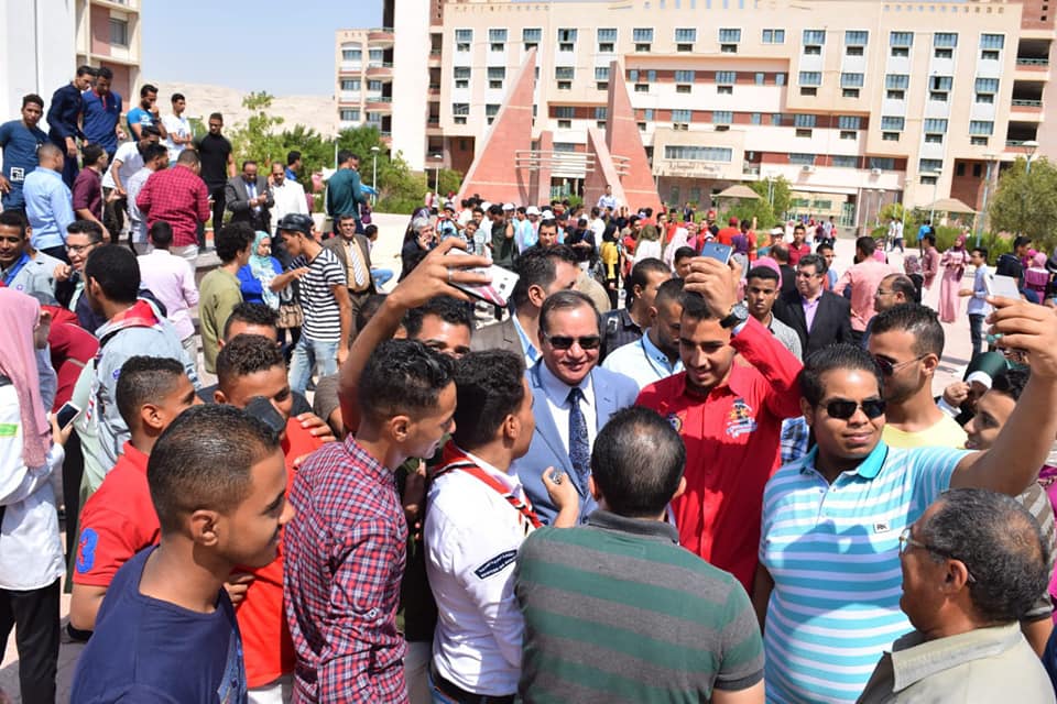 حي طلاب وطالبات جامعة سوهاج علم مصر في أولى لحظات انطلاق العام الدراسي الجديد ٢٠١٩/٢٠١٨ من ساحة العلم بقلب الجامعة الجديدة بمشاركة الدكتور أحمد عزيز رئيس الجامعة، والدكتور صفا محمود السيد نائب رئيس الجامعة لشئون التعليم والطلاب، ولفيف من عمداء الكليات وأعضاء هيئة التدريس والعاملين بالجامعة.