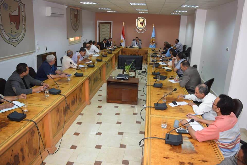 عقد الدكتور أحمد عزيز رئيس جامعة سوهاج اجتماع موسع شارك فيه 21 من أمناء الكليات المختلفة ومديري العموم لمناقشة استعدادات الكليات لاستقبال العام الجديد، وتثبيت العمالة المؤقتة والعديد من المحاور الهامة ضمن تطوير منظومة العمل بالجامعة استعداداً للعام الدراسي 2018 / 2019، بحضور المحاسب أشرف القاضي أمين عام الجامعة.