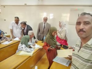 في لفته كريمه من معالي السيد ا. د. صبري توفيق عميد كلية ألألسن الموقر والسيد ا. د. طارق عبد النعيم عاصم وكيل الكليه لشئون التعليم والطلاب فقد حرصا علي متابعة سير أعمال الكشف الطبي في يومها الأول وتسليم ملفات الطالبات المرشحات للكليه هذا العام وقد رافق سيادته ا. محمد مزيد مدير شئون الطلاب و ا. محمود النقيب امين الكليه أثناء جولته.