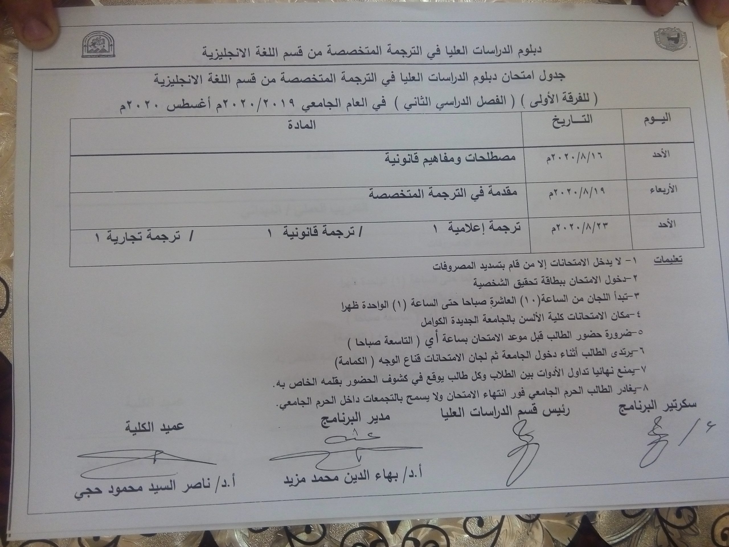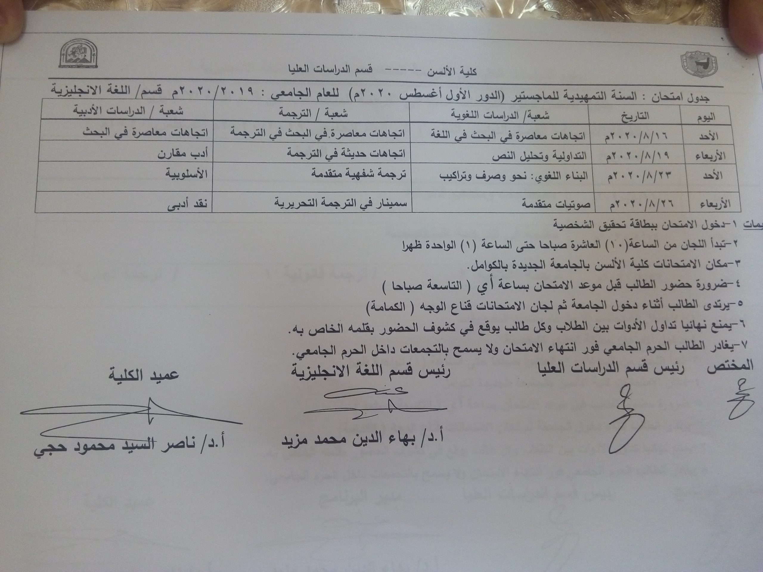بواسطة portal3نشر على 11 أغسطس، 2020نشر في اخر الاخبار All-focus All-focus All-focus All-focus جدول إمتحان دبلوم الدراسات العليا في الترجمة المتخصصة من قسم اللغة الإنجليزية للفرقة الأولي والثانية للفصل الدراسي الثاني لعام 2019/2020 تصفّح المقالات إعلان هام: امتحانات الدراسات العليا بمقر كلية الألسن بالكواملبرقية تهنئة