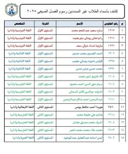 بواسطة Nourنشر على 28 أغسطس، 2025نشر في اخر الاخبار حسابات الدخول علي منصة زاد للطلاب المرشحين للكلية 2025 – 2026 يستخدم الطالب اسم الدخول ( كود الطالب ) في التسجيل علي المنصه كما سبق الشرح في المنشور السابق تصفّح المقالات الطلاب المرشحين لكلية الالسنجدول امتحانات الفصل الصيفي 2024 – 2025 م علي الطلاب غير المسددين للرسوم سرعة سداد رسوم المقررات المسجله قبل ىالامتحانات حيث لن يسمح للطالب بدخول الامتحان ما لم يكن مسددا للرسوم