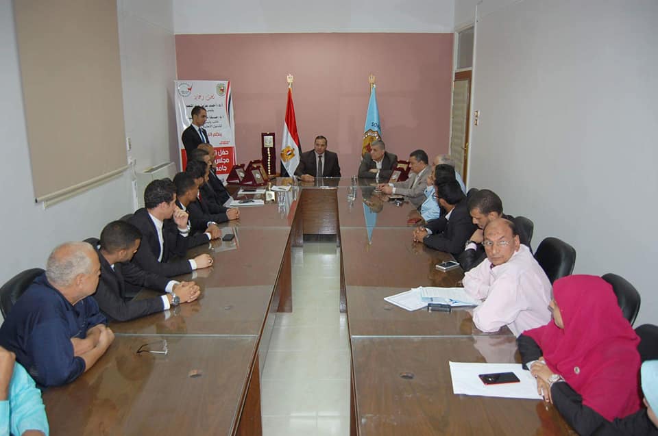 كما أكد رئيس الجامعة على ضرورة وضع الاتحاد خطة أنشطة منظمة وممنهجة لتنفيذها مع بداية العام الدراسى الجديد مع السرعة فى اتخاذ إجراءات التنفيذ لتلافي المشكلات التي تواجههم كل عام، مشيرا إلى ما تقدمه الجامعة وماتقوم به من تسهيلات لخدمة العملية التعليمية كإنشاء مبنى مخصص للأنشطة الطلابية بالجامعة الجديدة وعمل ممشى مظلل ممتد بين كليات الجامعة، وجارى توفير مواصلات داخلية لسهولة تنقل الطلاب بالجامعة، إلى جانب أعمال التشجير والنظافة والدهان والرصف بمقر الجامعة القديم .
