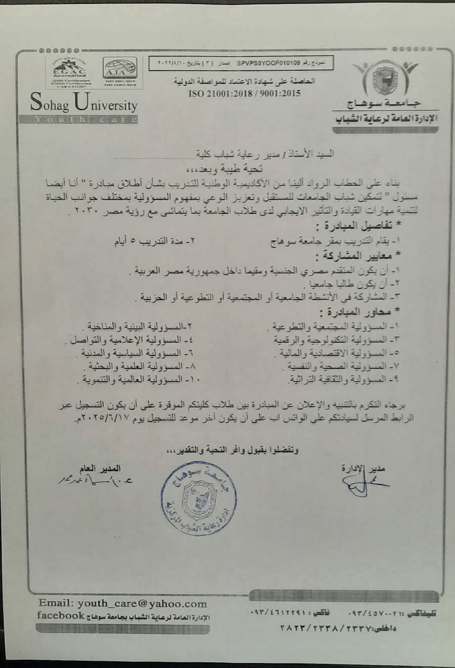 بواسطة Nourنشر على 18 يونيو، 2025نشر في اخر الاخبار مبادرة أنا أيضا مسؤل للاستفسار والمشاركة التواصل مع إدارة رعاية شباب بالكلية تصفّح المقالات عميد الكلية يسلم معالى النائب المحترم الأستاذ الدكتور خالد عبداللطيف نائب رئيس الجامعة لشئون تنمية البيئة وخدمة المجتمع درع لجهوده المبذولة لدعم الكليةجامعة سوهاج تحرز انجازا كبيرا في تصنيف US News العالمي وتتقدم ١٦٢ مركزا لعام 2025-2026*