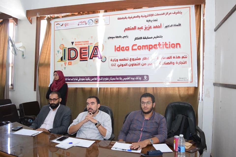 وأضاف د. محمود أبو العز مدير مركز الخدمات الإلكترونية والمعرفية أن هذه المسابقة تأتي في إطار مشروع تنظمه وزارة التجارة والصناعة، بدعم من التعاون الدولي ‘‘Giz‘‘ لنشر الوعي بالإبداع وريادة الأعمال بالجامعة موضحاً أن المجتمع السوهاجي مليئ بالنماذج المشرفة القادرة على إنتاج أفكار مبتكرة وتحويلها لمشروعات ناجحة ومؤثرة في سوق العمل، حيث أن المركز يدعم أصحاب الأفكار والمشروعات ويساعدهم في أن بلورة أفكارهم، وخروجها إلى النور، ويقدم لهم كافة وسائل المساعدة والتدريب لتحقيق أهدافهم .
