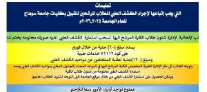 وتحضر الي شئون الطلاب بالكلية يوم الكشف الطبي.